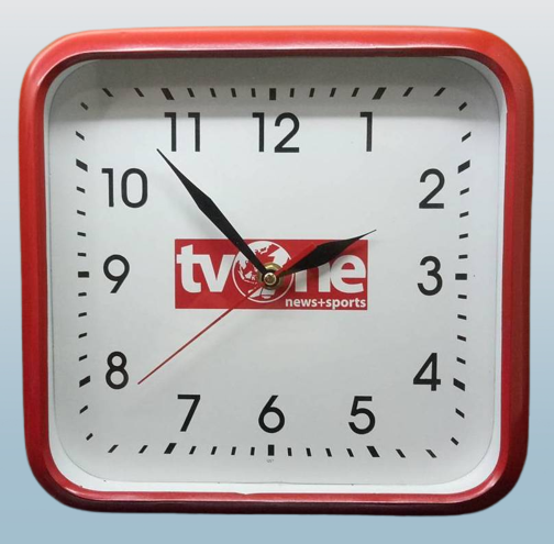 Contoh Pesanan Jam dinding TV One model kotak warna bisa desain logo TV One , Anda Minat model jam ini warna bisa di sesuaikan permintaan pemesan.