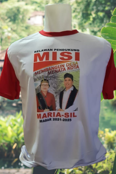 Konveksi kaos partai bahan hyget putih list warna merah dengan sablon bagian dada dan punggung ukuran masinal A4, yang minat bisa kontak kami :