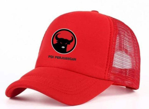 Konveksi topi jaring warna merah salah contoh sablon logo PDIP , yang minat order topi dengan warna ini bisa kontak kami di nomor yang tertera