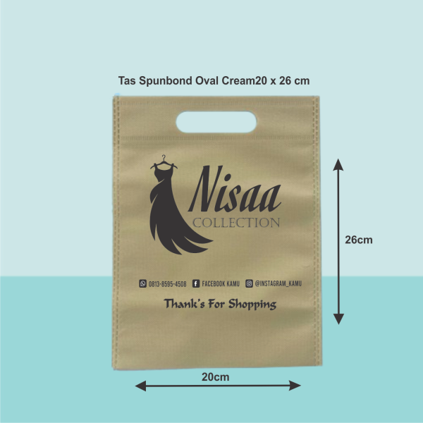 Tas Sponbond press warna CREAM handle Pon bahan spunbond gramasi 65 , bisa sablon logo atau nama store anda